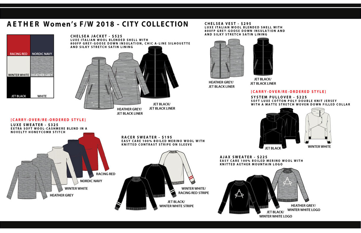 Aether Women's FW 2018 City/lifestyle Collection Line sheet